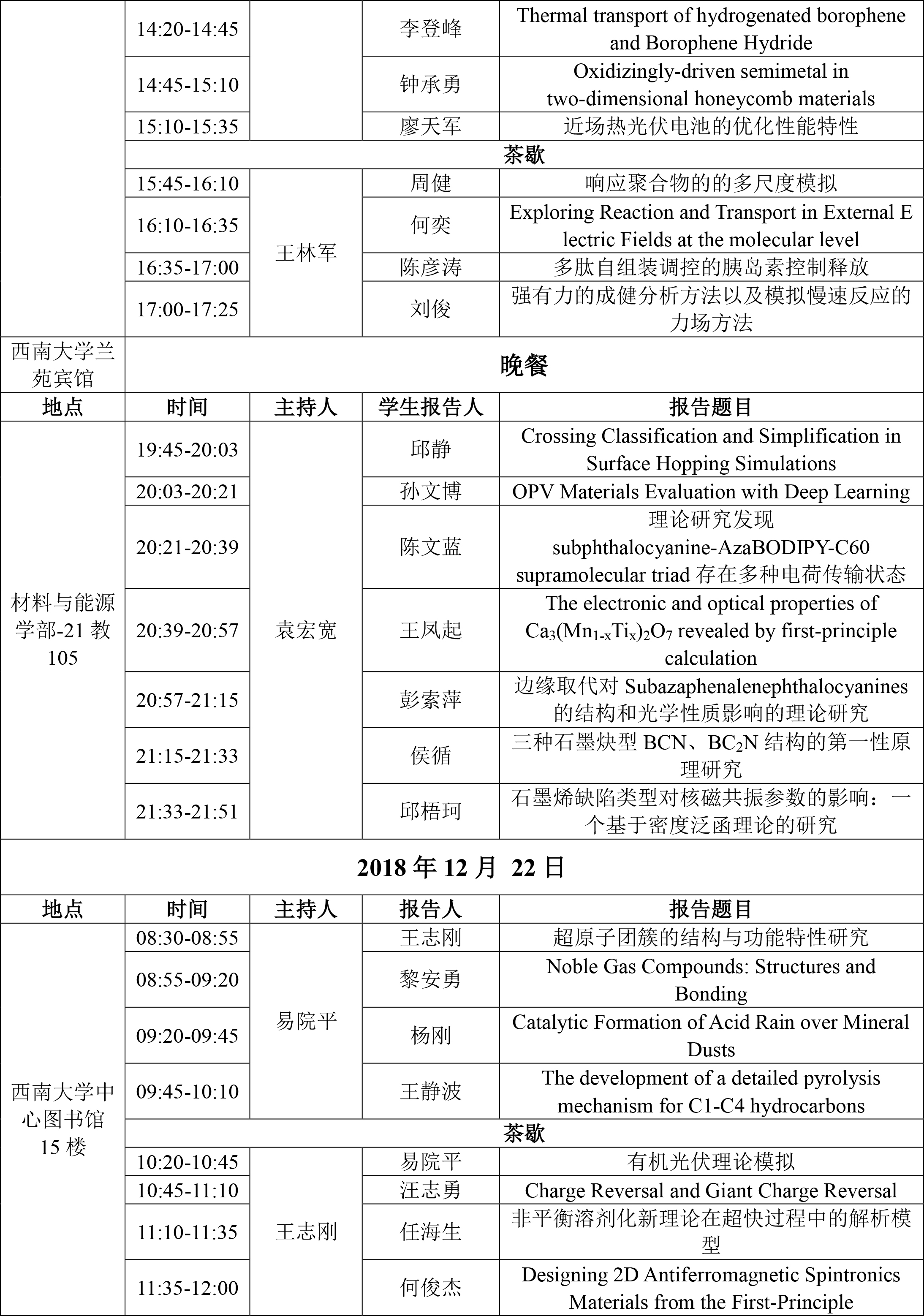 理论与高性能材料化学与物理学术会议日程