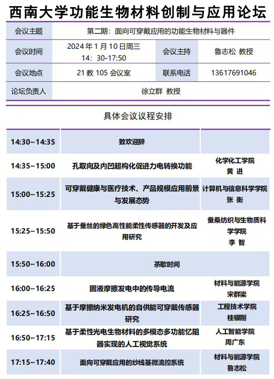 PA视讯官网功能生物材料创制与应用论坛(第二期:面向可穿戴应用的功能生物材料与器件)
