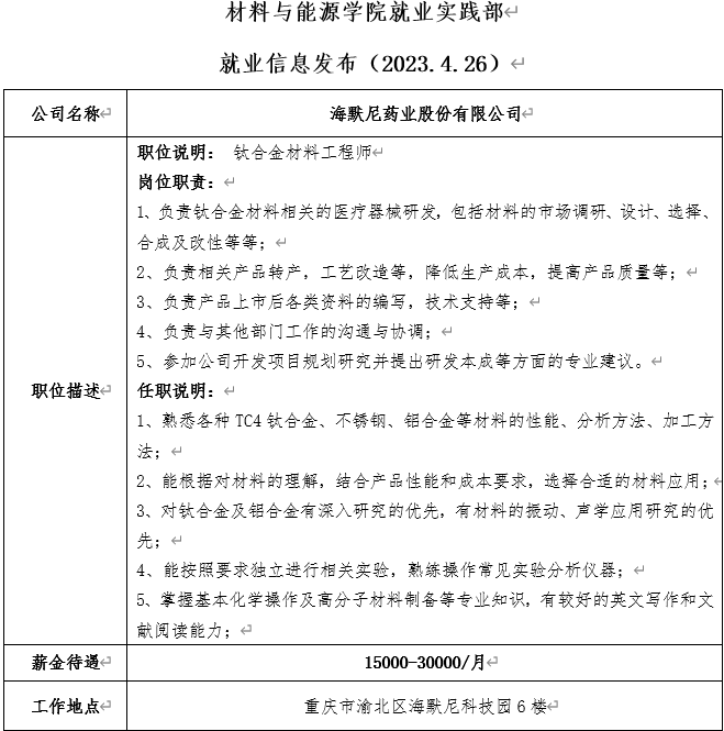 就业信息发布(2025 版权所有:PA视讯(国际)官方网站-PlayAce AG旗舰.4.26)——海默尼药业股份有限公司