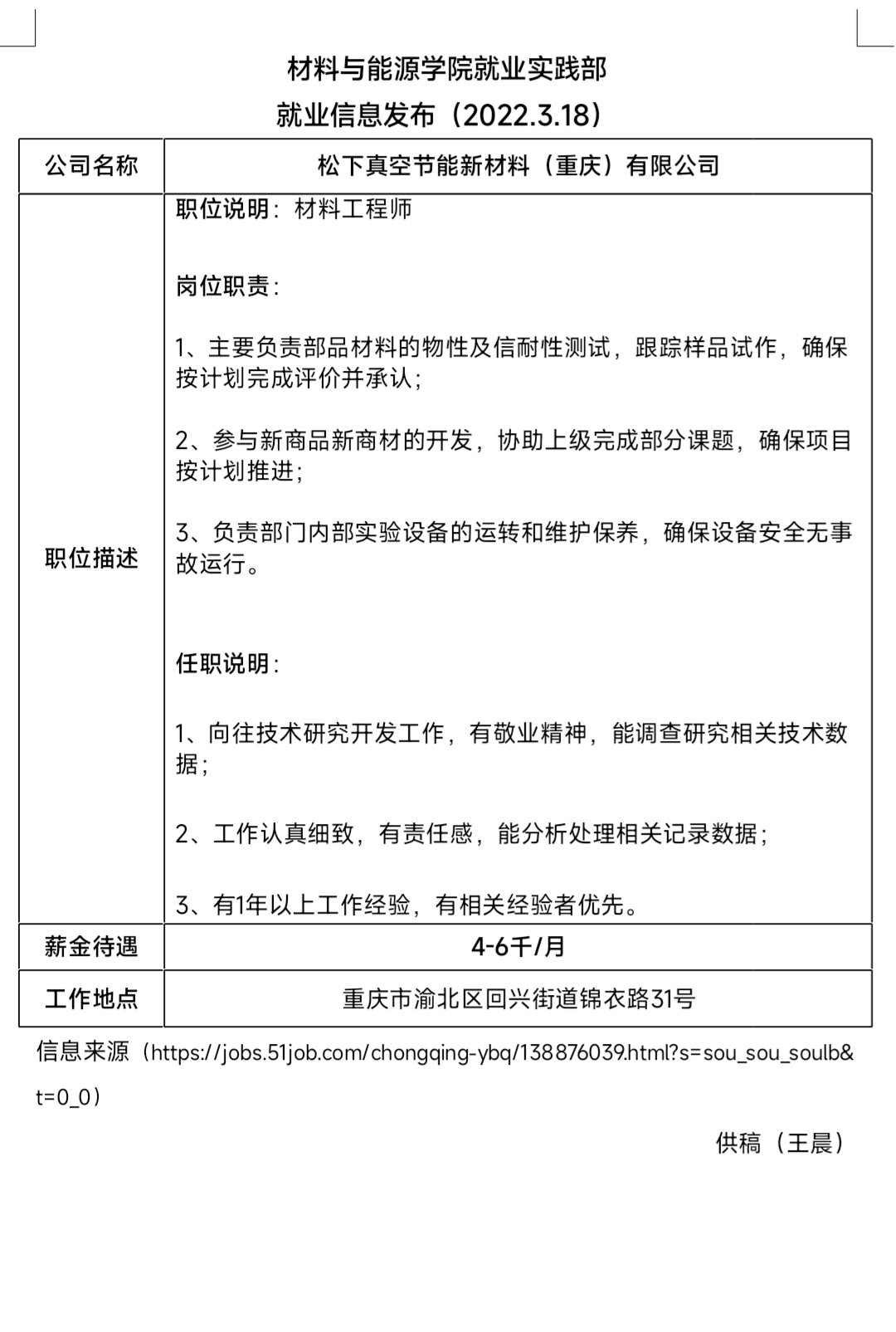 材料与能源与能源学院就业实践部 就业信息发布