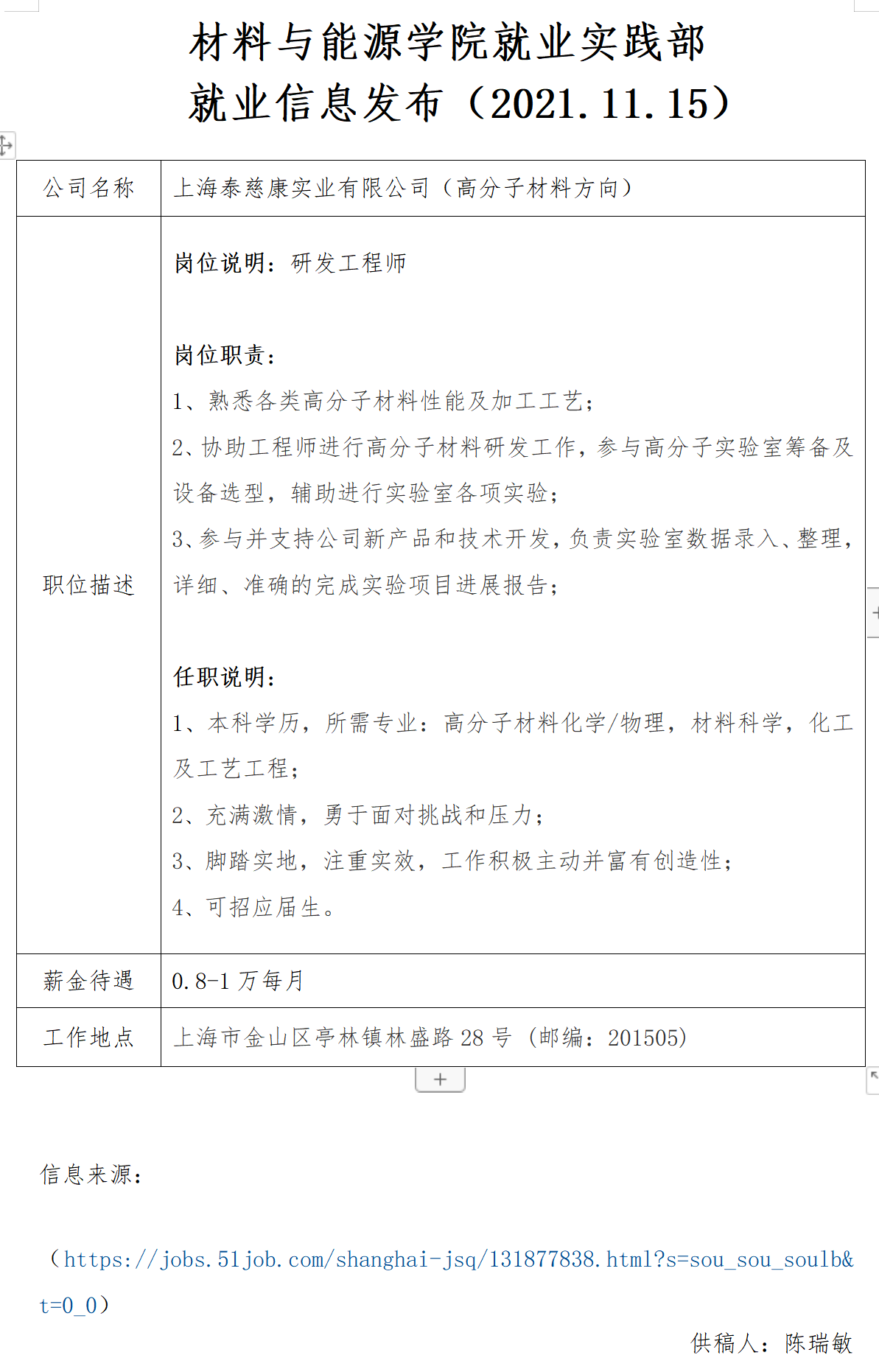 就业实践部发布--上海泰慈康实业有限公司(1)