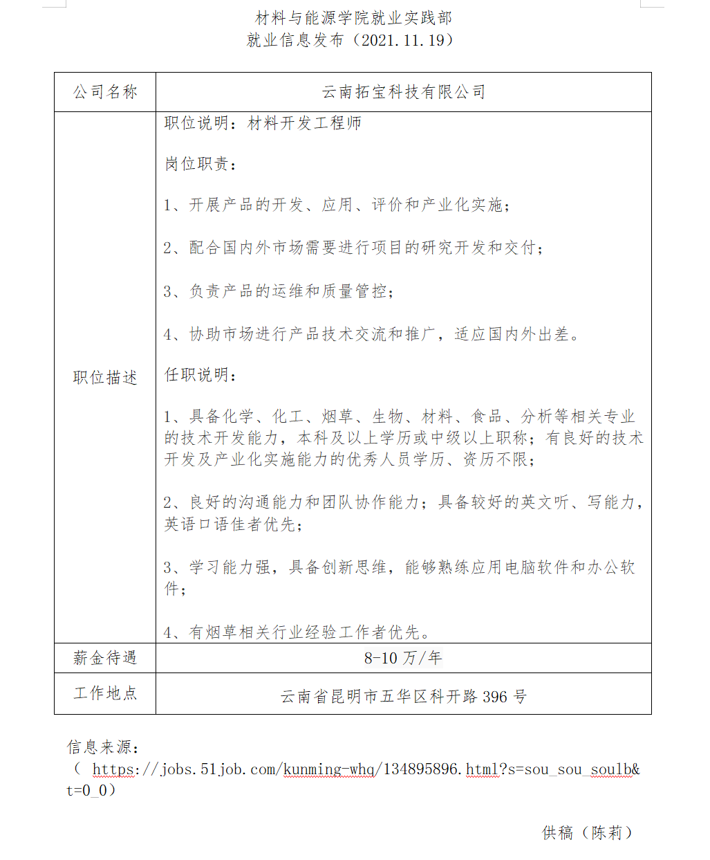 就业实践部发布-云南拓宝科技有限公司(2021.11.19)