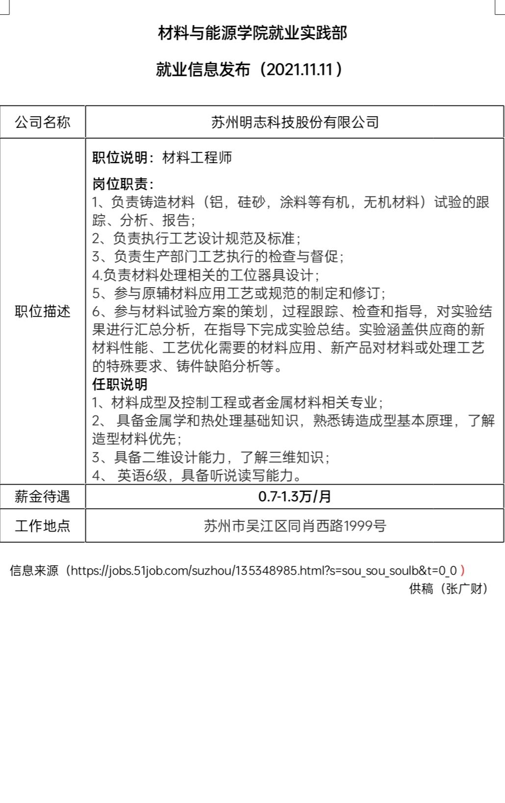 PA视讯官网就业实践部 就业信息发布-苏州明志科技股份有限公司(2021...
