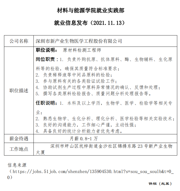 就业实践部发布-深圳市新产业生物医学工程股份有限公司(2021.11.11)