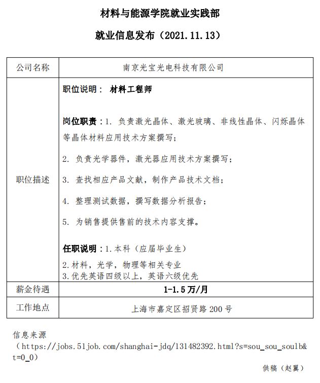 就业实践部发布-南京光宝光电科技有限公司(2021.11.11)