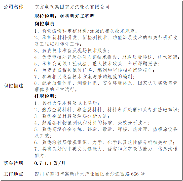 就业信息发布2021.10.8--东方电气集团东方汽轮机有限公司