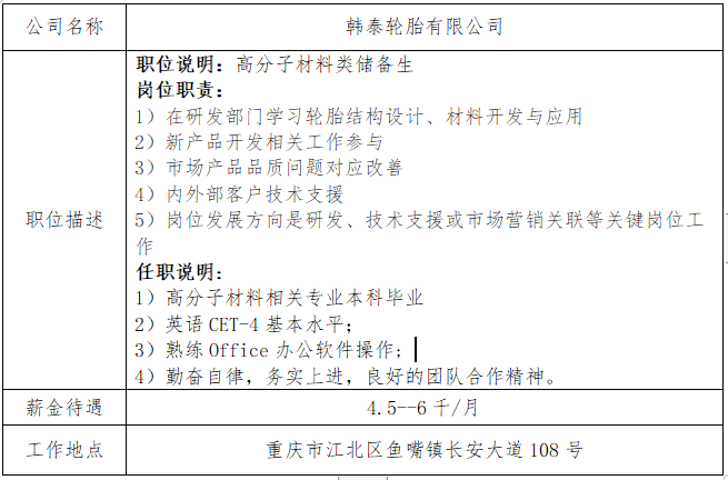 就业信息发布2021.6.11--韩泰轮胎有限公司