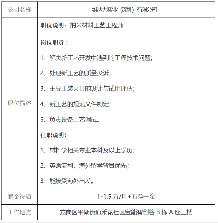 就业信息发布2021.4.25—(维达力实业(深圳)有限公司)(1)