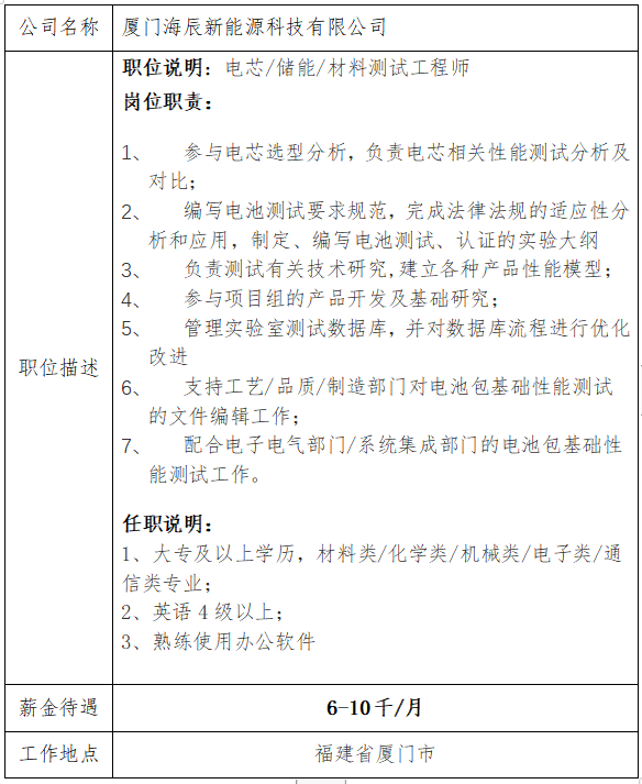 就业信息发布2021.3.19--厦门海辰新能源科技有限公司