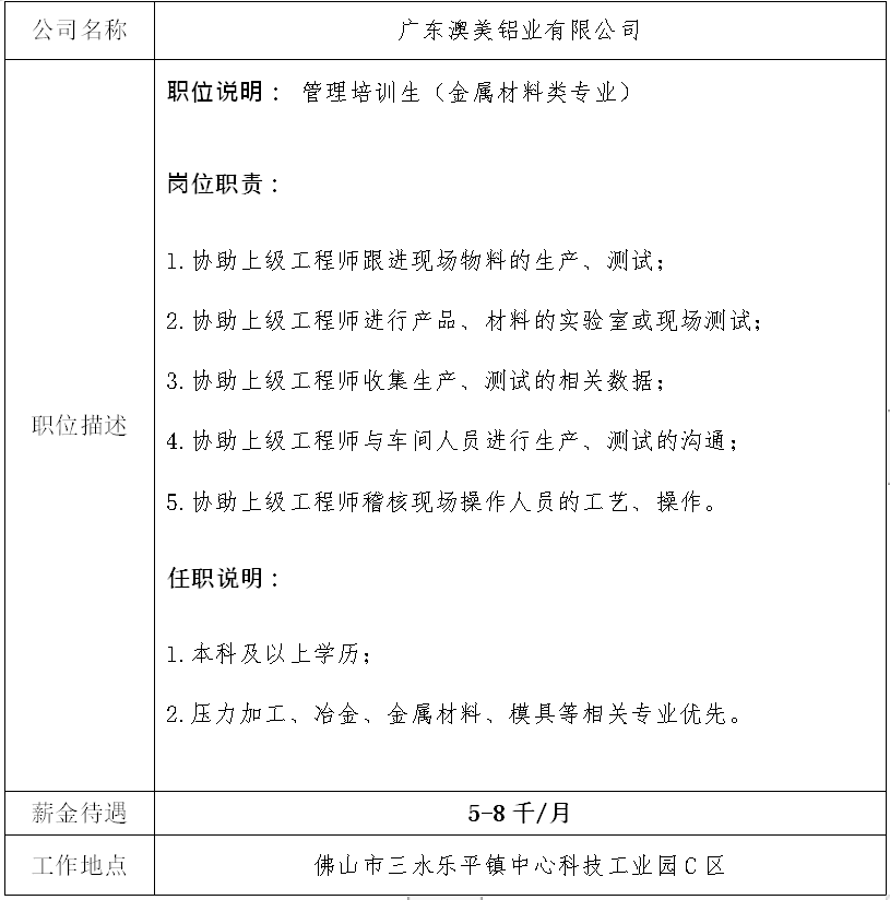 就业信息发布2020.12.22-广东澳美铝业有限公司