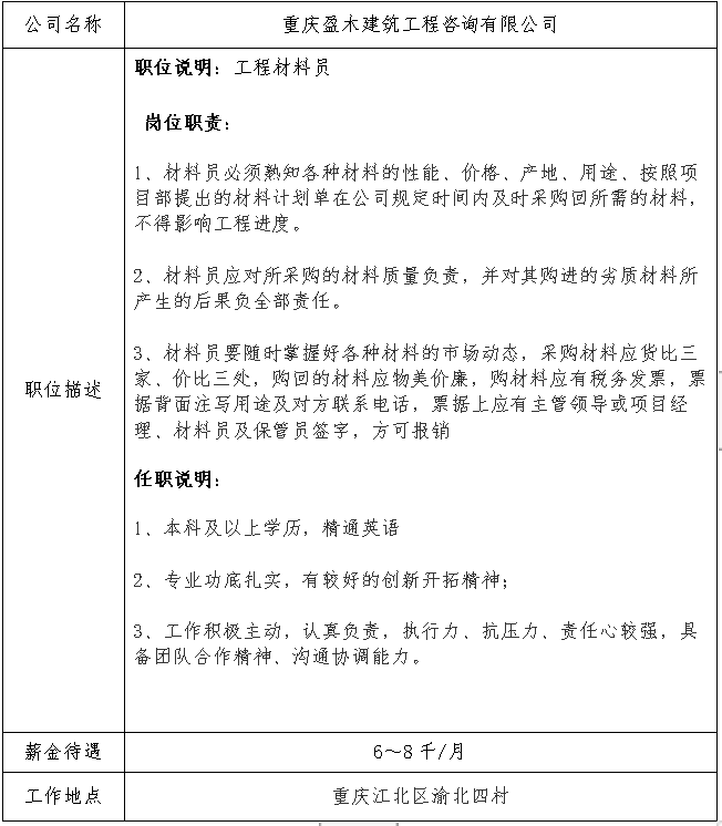 就业信息发布2020.12.29-重庆盈木建筑工程咨询有限公司