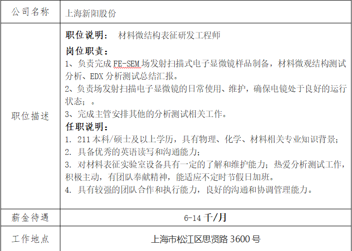 就业信息发布2020.11.30-上海新阳股份