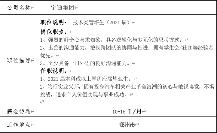 就业信息发布2020.11.4-宇通集团