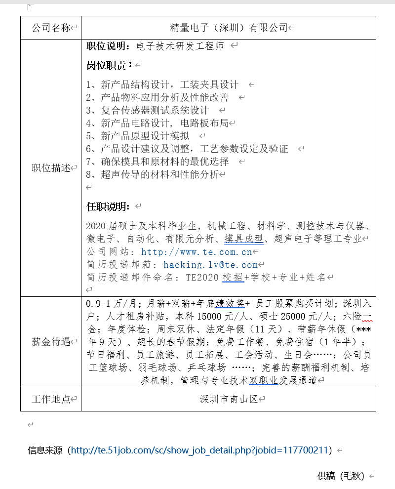 就业信息发布2020.3.7-精量电子(深圳)有限公司