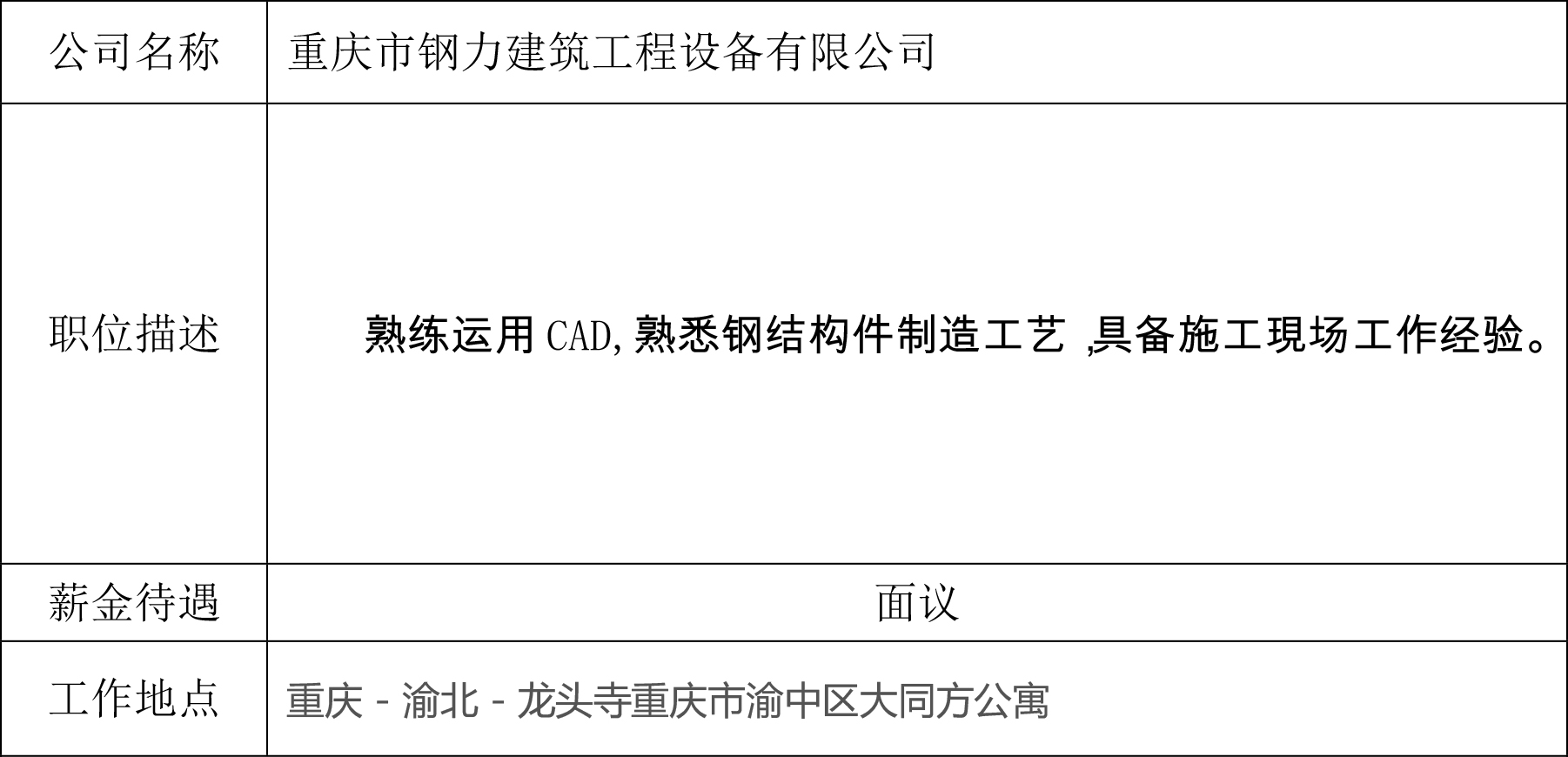就业创业中心20190410发布-重庆市钢力建筑工程设备有限公司