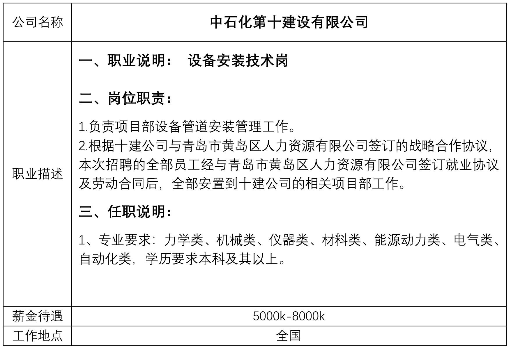 就业创业中心20190414发布-中石化第十建设有限公司