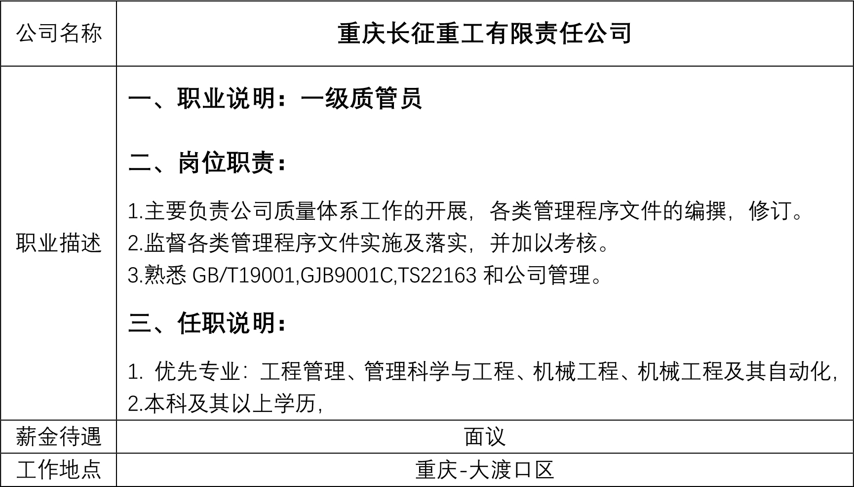 就业创业中心20190303发布-重庆长征重工有限责任公司