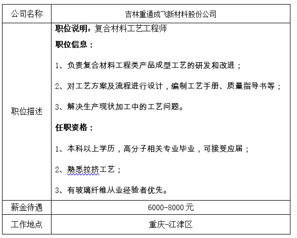 就业创业中心20180530发布-吉林重通成飞新材料股份公司