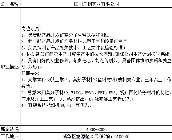 就业创业中心20180427发布-四川是钢实业有限公司