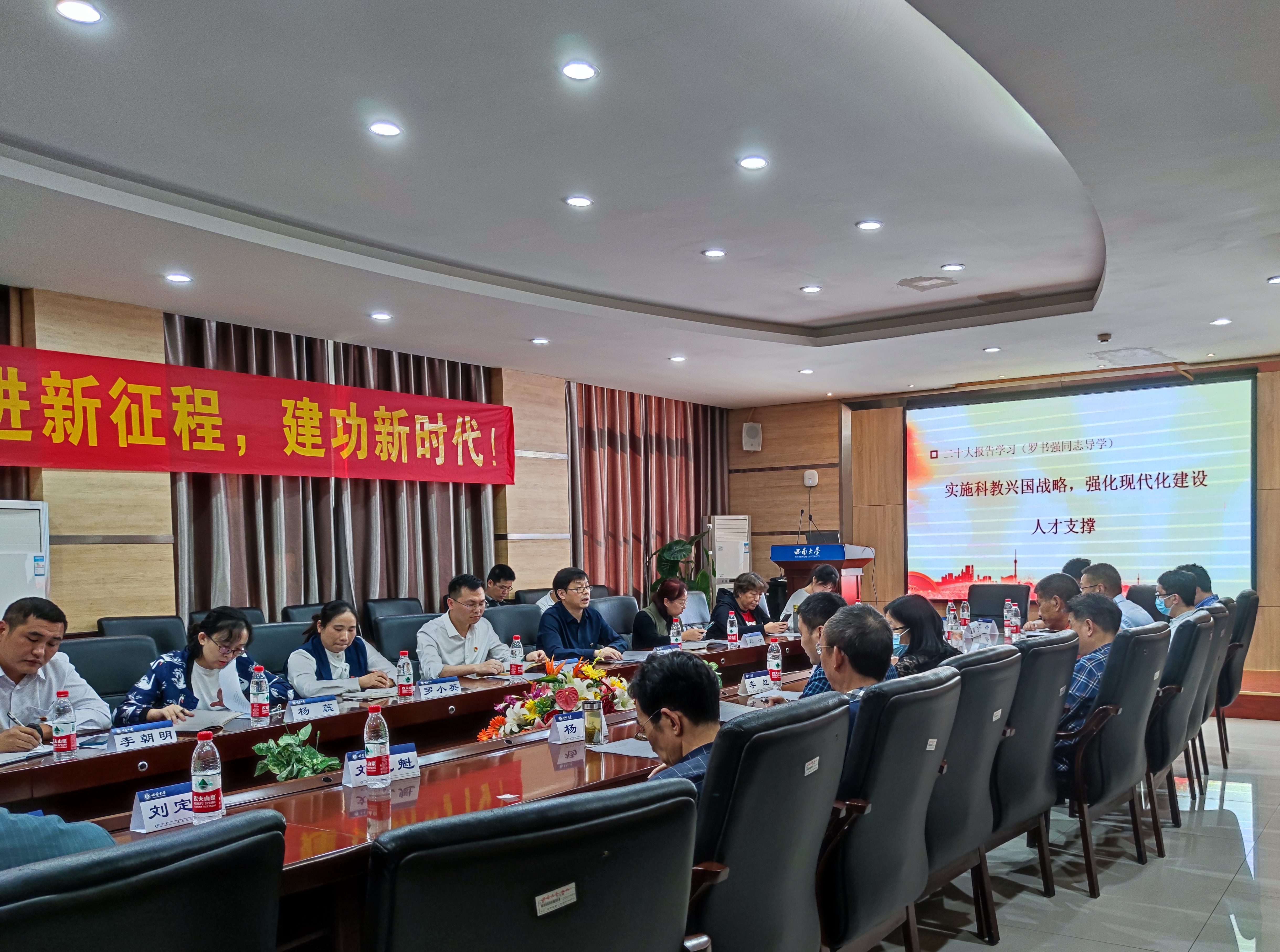 为深入学习贯彻党的二十大精神,落实高等学校立德树人根本任务,2022年10月21日,学院教工第二党支部与实验室建设与设备管理处党支部第二党小组联合开展“学习领会党的二十大精神”主题党日活动。实验室建设与设备管理处处长卢坤、副处长罗书强,学院党委书记李红、副院长郭胜锋以普通党员身份参加了此次活动。