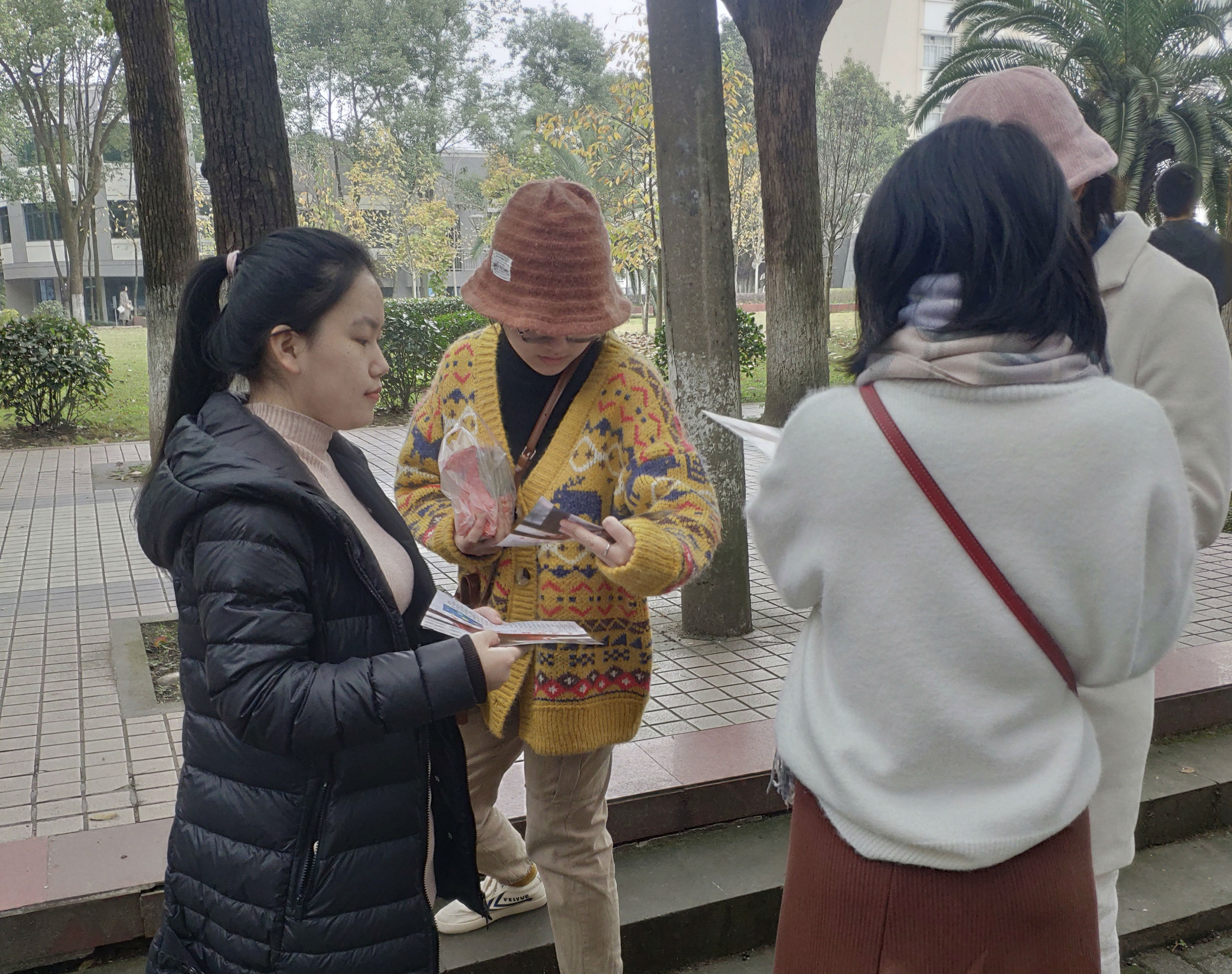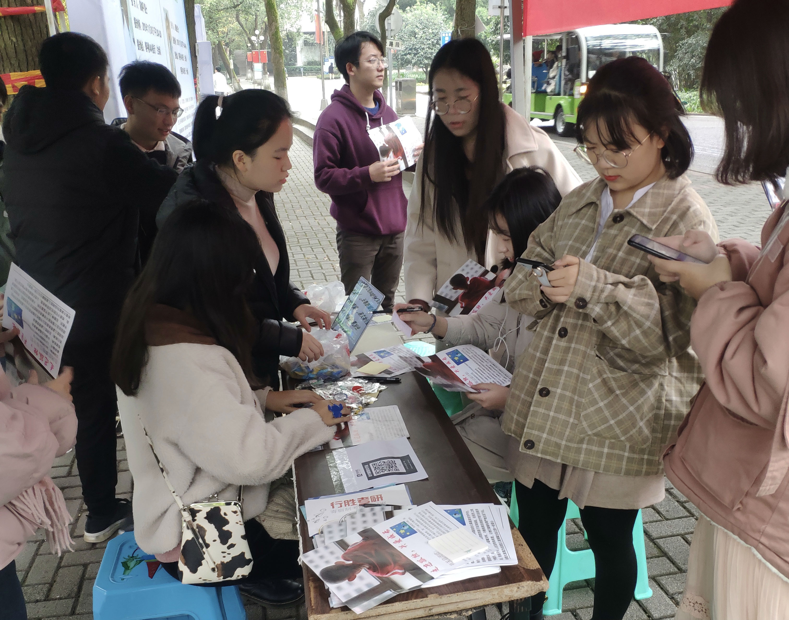 根据班长黎维常安排,大家开始了自己的工作。2名学生在帐篷处播放视频,接待爱心人士,介绍相关事项,其余同学则积极主动地分发传单,向路过的学生等进行宣传,并耐心的向其介绍有关自闭症的知识,带领他们来到募捐地点。即便在14:00后有一点小雨,大家也坚持者自愿者活动,希望有更多的人能够了解自闭症,希望能为自闭症儿童带来更多的温暖。
