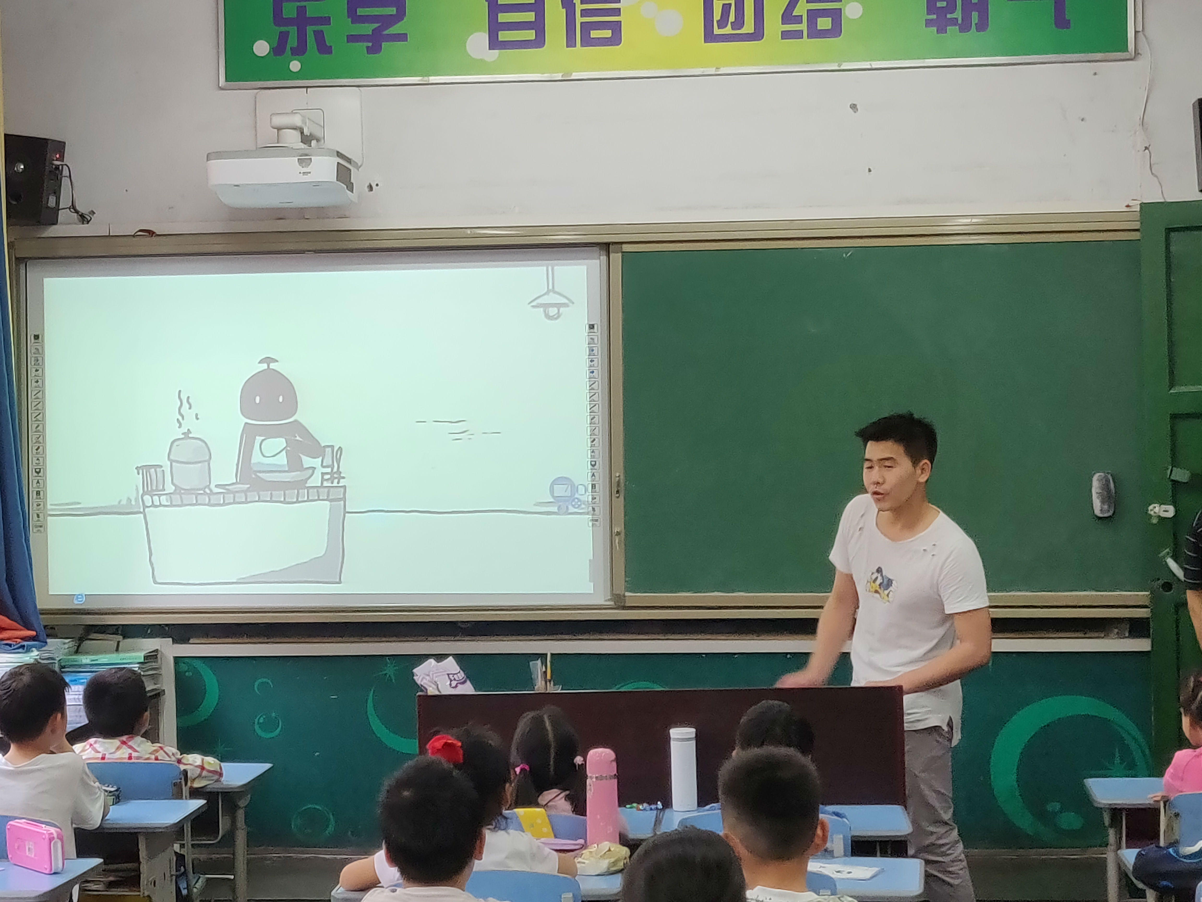 活动第一项,由肖又木同学宣布开始。在肖又木同学讲词时,董栩佳同学和谢文明同学为小朋友们发放糖果。之后,谢文明同学为小朋友们播放了与节水相关的视频,并随机抽取了小朋友回答和对视频里的行为的评价。