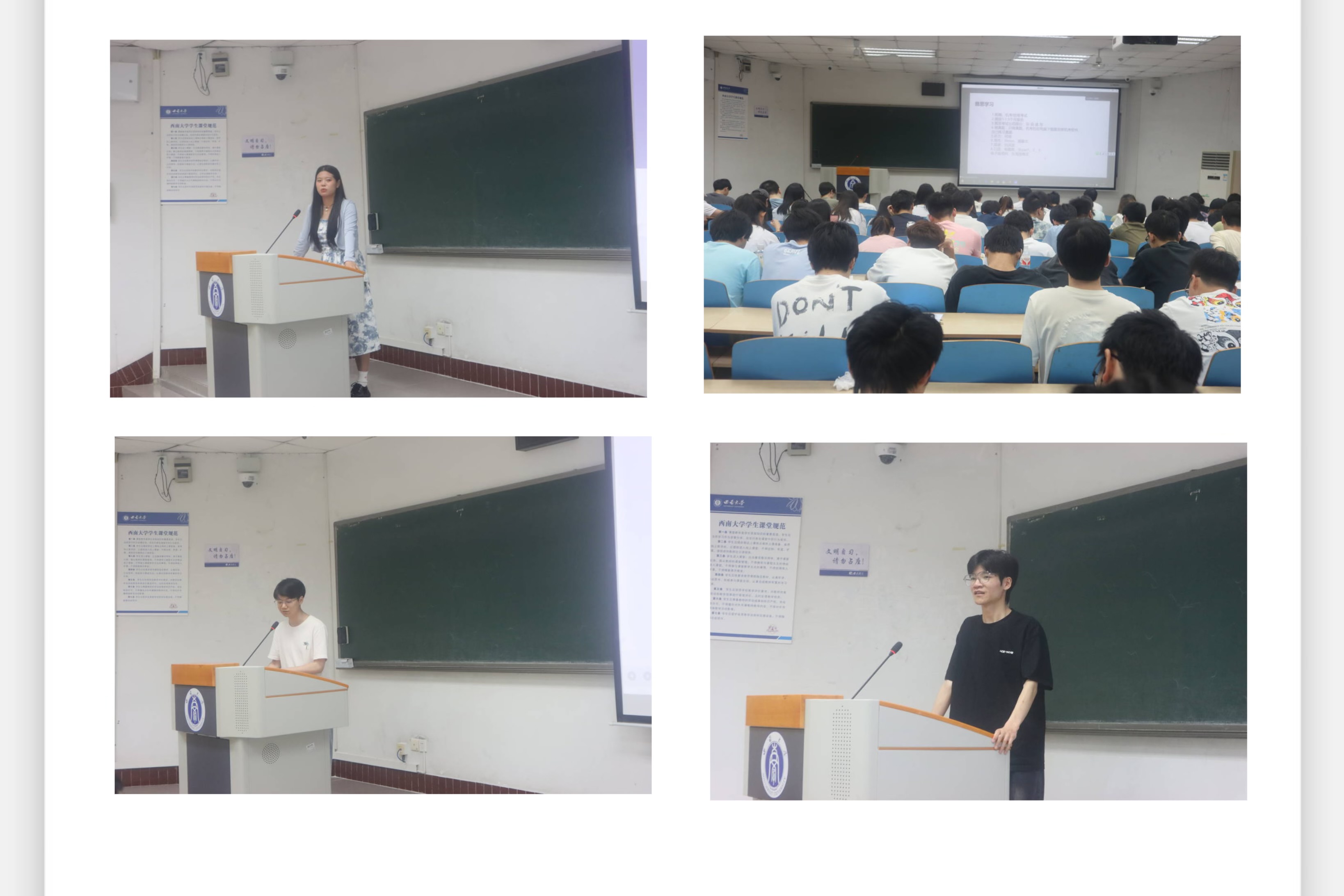 林后润、乐言、王健、孙辉珺等四位2020级学长学姐分别代表对保研、考研、就业及出国留学的相关政策和准备技巧及作了讲解和经验分享。他们用自己的独特方法,结合自身实践经历,将宝贵的经验与见解传递给各位参会同学,并鼓励大家要坚定信心,放平心态,把握自身优势,实现个人理想。