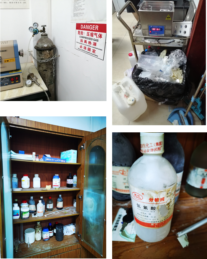 在安全检查过程中,工作小组详细查看了实验室的安全责任体系和制度建设、实验操作规程、登记记录、设施条件及相关标识等,特别是化学药品的存放、废液的储存和回收、气瓶的管理等情况做了重点检查。通过检查发现,目前学院实验室的管理日益规范,但仍存在一些安全隐患:21教学楼214实验室内气瓶和箱式炉放在一起,压缩气体未远离热源,同时屋内垃圾未及时清理;21教218实验室内也存在气瓶未远离管式炉的问题;麦田村106实验室,实验室内化学药品柜未用双锁锁好,台面上放置有危险化学品,同时化学药品柜没有配备相应的化学品清单和化学品使用记录本。安全工作小组在现场对检查中发现的问题做好了记录,要求相关责任人高度重视,尽快完成安全问题整改,进一步强化实验室管理,为广大师生营造一个和谐安全的实验环境。