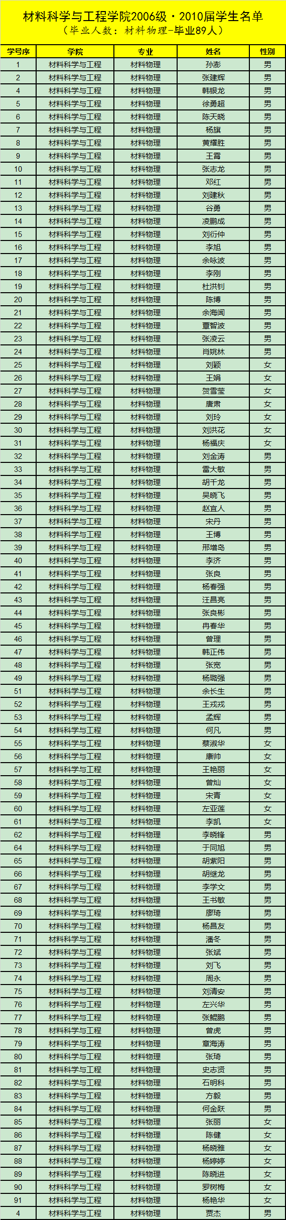 2006级·2010届(毕业时89人,辅导员:杜志红)