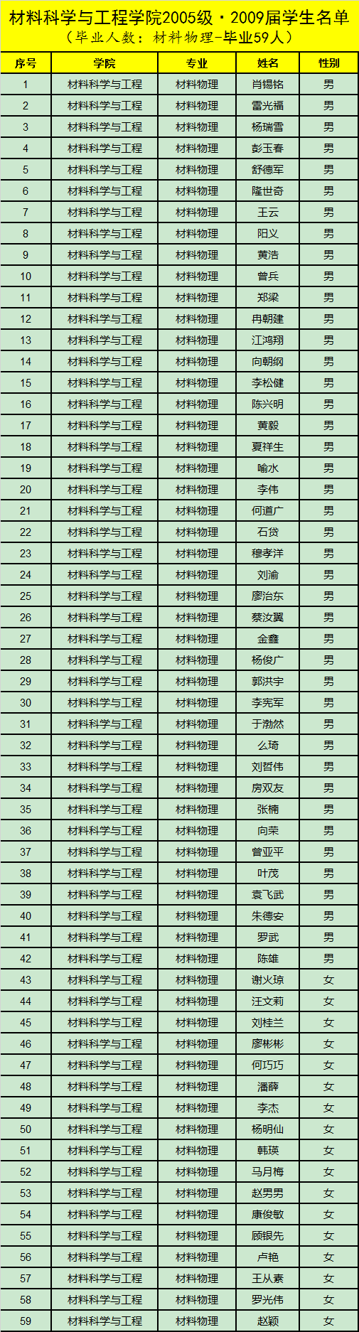 2005级·2009届(毕业时59人,辅导员:杜志红)