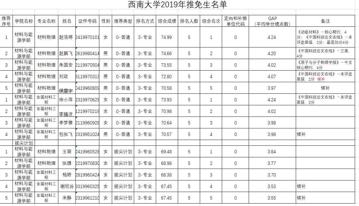 2019年推荐优秀应届本科毕业生免试攻读硕士研究生工作经本学部2015级学生自愿申请,学部专家组对申请人的科研成果及获奖进行审核认定、答辩评议,推免考评工作组对学生成绩积分进行计算审核, 推免工作领导小组按照文件对申请人成绩积分、奖励积分进行了统计排序,现将推免结果公示如下: