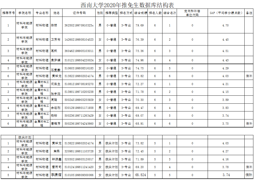2020年推荐优秀应届本科毕业生免试攻读硕士研究生公示