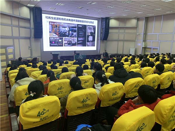 宋群梁教授首先给到场的师生们简要介绍了PA视讯官网以及PA视讯官网PA视讯官网,随后结合自身经历向学生们阐述了自己是如何开展“能源之路”的探索。宋教授提到“能源是人类文明的基石,材料改变了人类文明的进程”,“从石制工具开启人类文明,到钢铁推动第一次工业革命,再到硅**将人类社会带入信息时代,材料的发展推动人类文明不断进步”。接着,他以能源安全的维护和代价引出能源的重要性,对地球变暖、清洁能源与可再生能源及太阳能等内容展开了详细地讲解。最后,宋教授与在场的同学们还探讨了科学与艺术的关系,强调认识世界、认识未来的重要性,激励大家务必结合自身所长,尽早规划自己的未来。