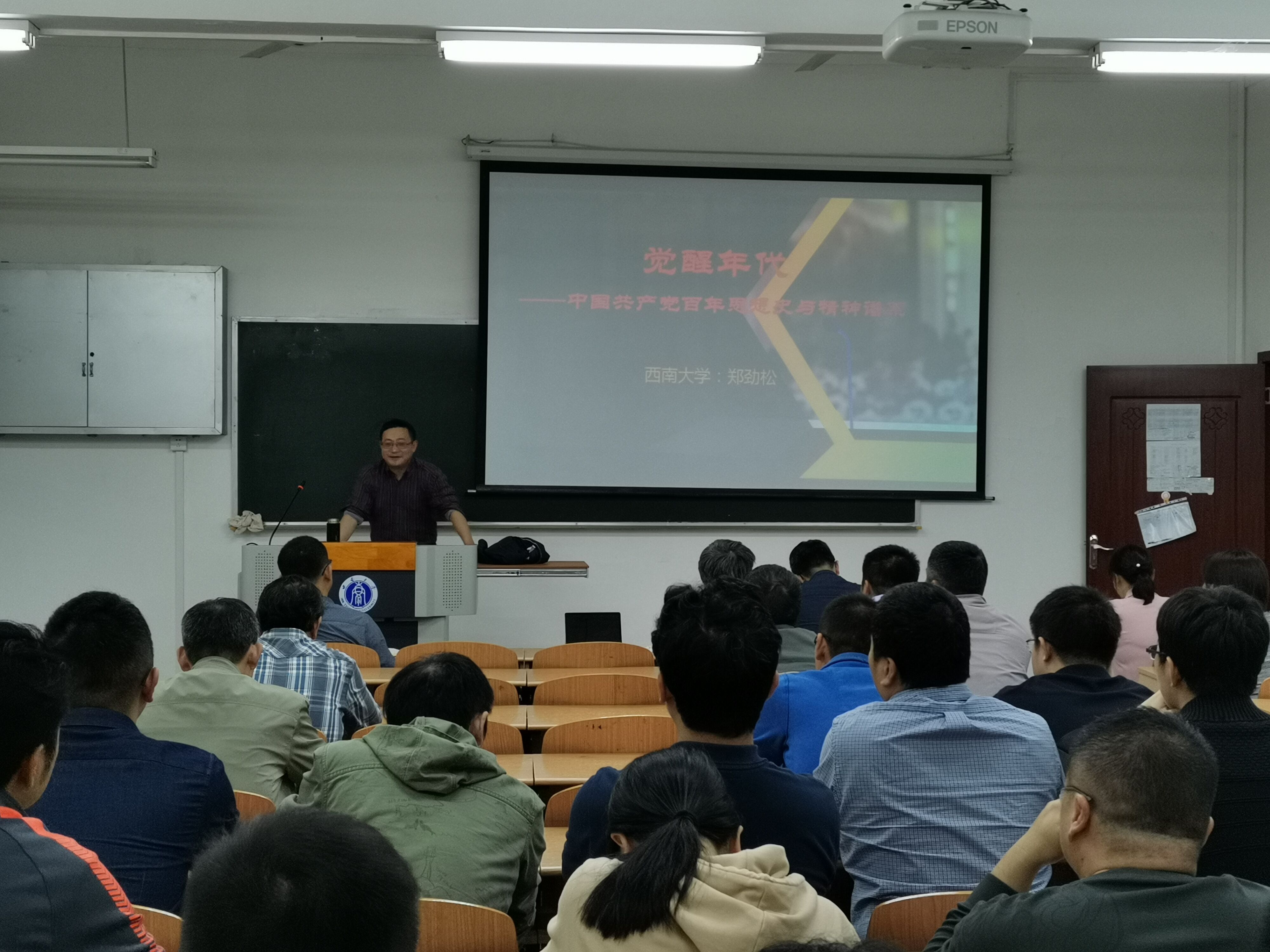 5月7日下午,学校档案馆郑劲松副馆长应邀来到学院21教210教室,以《觉醒年代——中国共产党百年思想史及精神谱系》为题,为学院全体教职工上了一党精彩的党课,全场掌声不断、其乐融融。