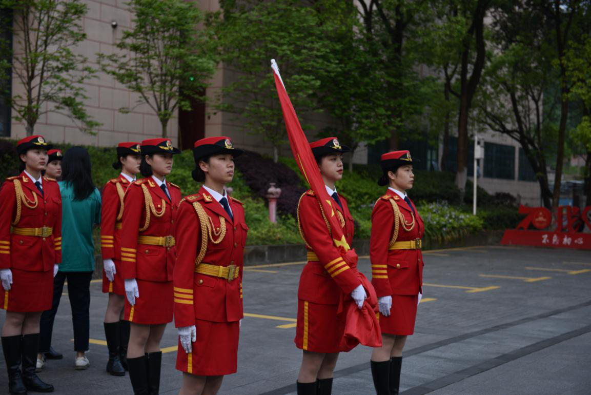 升旗仪式开始前,PA视讯官网女子国旗班就已在升旗台前集合完毕。她们身着红色军礼服,脚下发出整齐划一的踏步声,一遍遍地进行着最后的训练。
