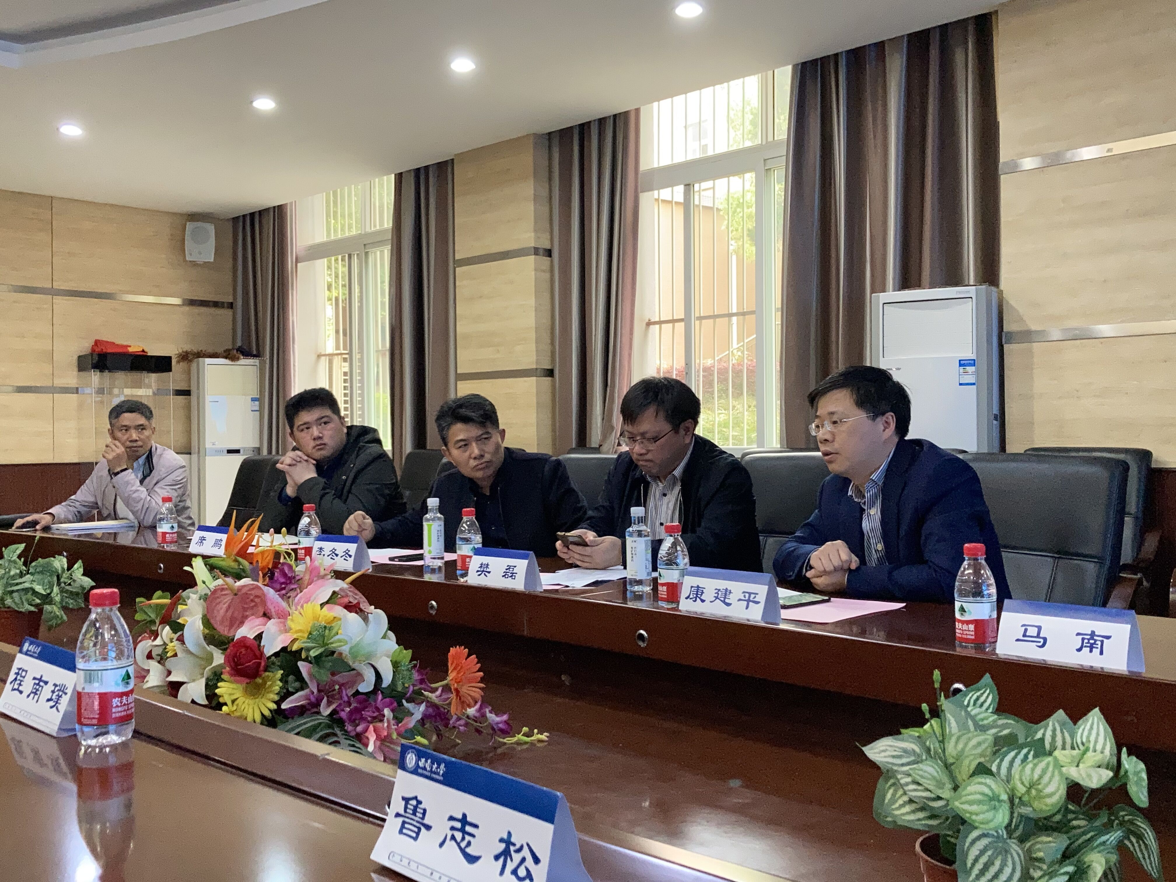 2021年3月19日(周五)上午10:30,宿迁市宿豫区相关领导前来我院,在21教105会议室就产学研对接工作进行了座谈交流。宿迁市宿豫区有5名领导出席:宿豫区副区长、省第十三批科技镇长团宿豫团团长樊磊同志,区政协副主席、科技局局长康建平同志,区委组织部部务委员、党校常务副校长李冬冬同志,区人才综合管理服务中心主任马南同志,宿迁高新区科技人才局人才科科长席鹏同志。PA视讯官网党委书记李红同志、院长兼党委副书记徐茂文教授同时出席,并分别代表我院向宿迁市来访贵宾表示了热烈欢迎。