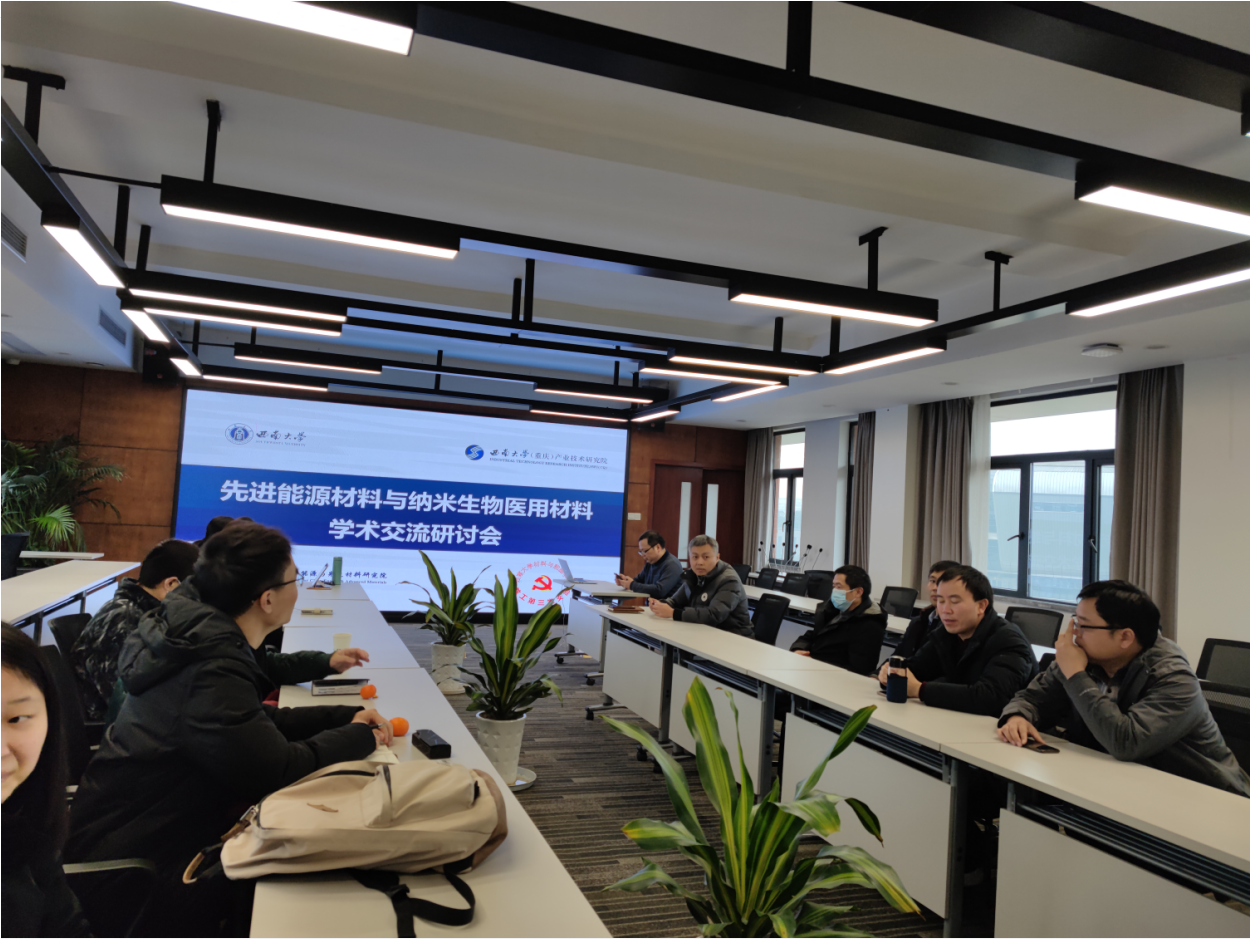 在学校党委的指导下,PA视讯官网党委一直强调,党建工作要与事业融合发展。为此,1月21日下午在PA视讯官网产业技术研究院2号楼会议厅,我院教工第三党支部作为发起单位,联合学院洁净能源与先进材料研究院,举办了“先进能源材料与纳米生物医用材料学术交流研讨会”,除支部全体党员同志外,研究院相关教学科研人员也参与了本次会议。会前,PA视讯官网产业研究院负责人带领大家参观了西大产业孵化展览厅,通过视频简介、宣传海报、实物展品等形式,给大家展示了“环PA视讯官网创新生态圈”,教师们感慨西大产业发展势头如雨后春笋,大家对专业领域产业化的尝试也跃跃欲试。