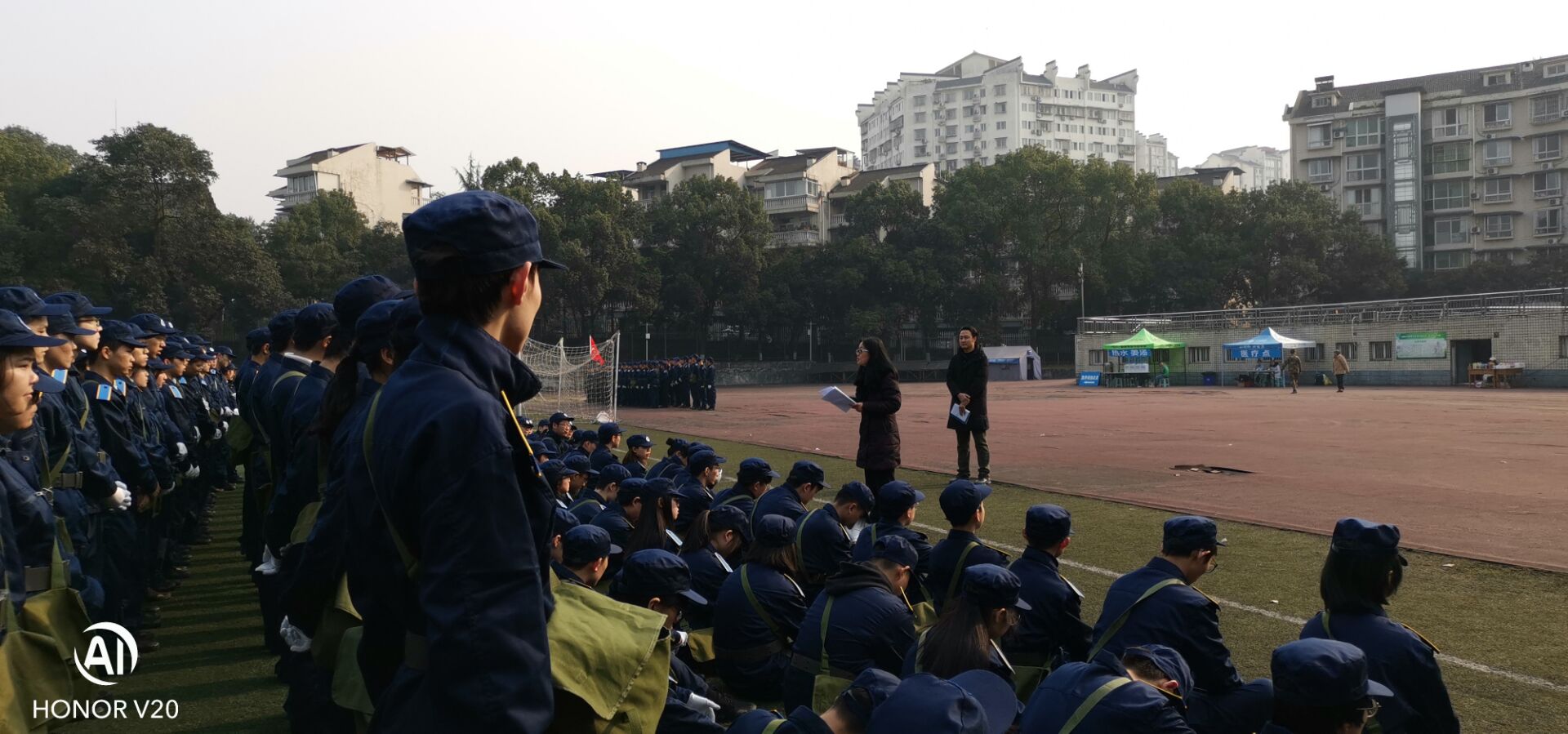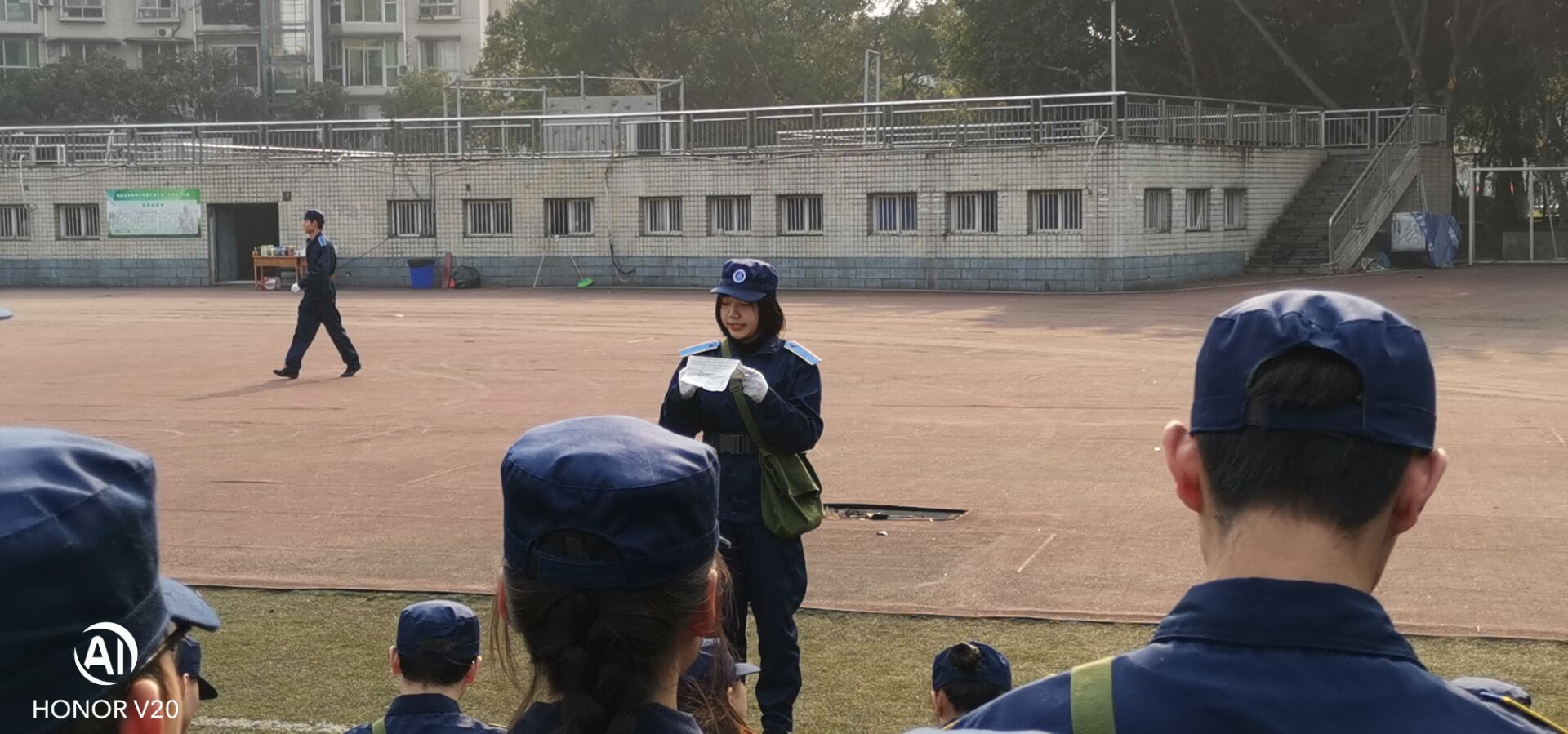 1月15日下午,根据学校武装部关于新生军训工作的相关安排,学院就2020级本科生集中军训,在第三运动场举行了分散动员大会,会议由年级辅导员(军训编队三团五营22连副连长)宋鹏老师主持。