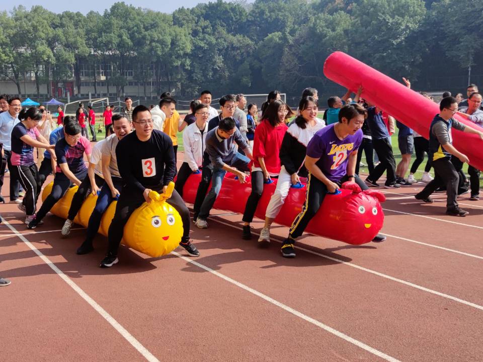 接下来是毛毛虫比赛,教师们仿佛回到了童年,喜笑颜开并且配合默契,在比赛中不断为队友加油鼓劲,不一会儿就到达了终点。