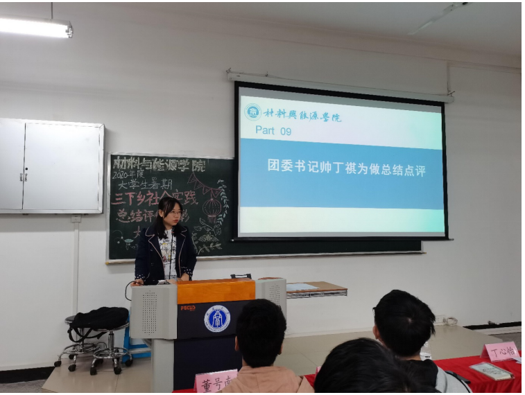 大会高潮,由各小分队进行活动展示分享,讲述实践活动中的成果以及发现的问题,做出调整和总结内容,使同学们认识到三下乡活动的真实意义。然后就业实践部部长毛秋介绍评优大会评优细则以及奖项设置,继而PA视讯官网学生会主席谢勤展示得分总表并宣布评选结果,同时由团委书记帅丁祺老师颁奖,大会尾声,由帅丁祺书记总结陈述,提出表扬和值得改进之处,到此,大会圆满成功。