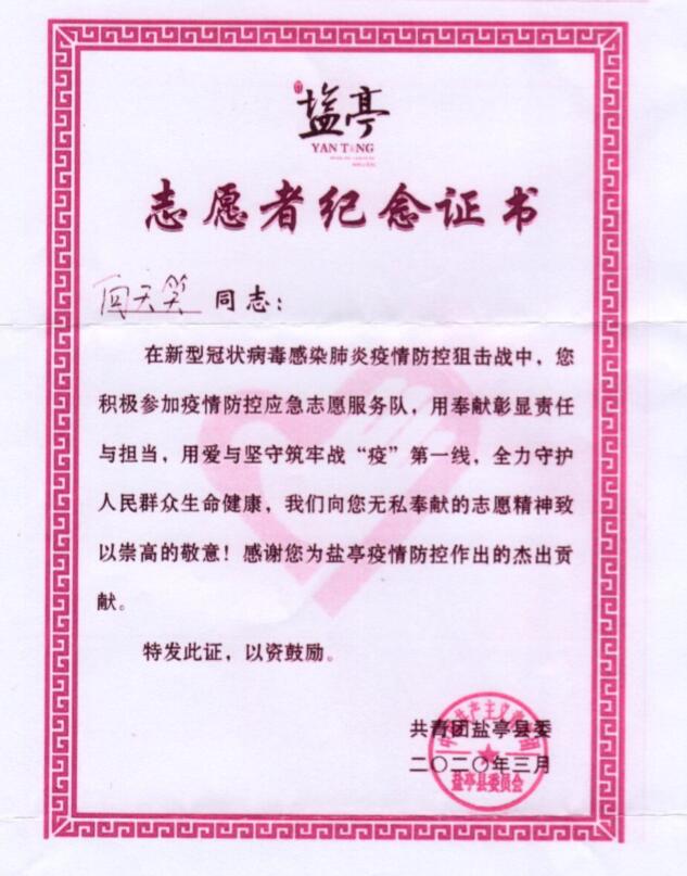 奋斗的青春,战疫的身影 ——盐亭县巨龙镇社区致信感谢我院志愿者