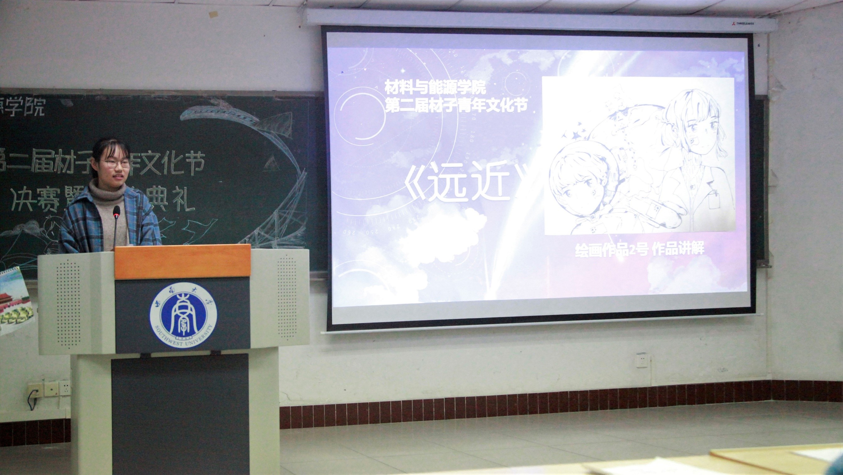 材子活动开始,各作品作者依次为大家讲解自己的作品。本次决赛的作品种类有:手工作品、绘画作品、视频作品、书法作品。手工大赛主题为“我为祖国献礼”作品形式多样,有由620张纸片组成的中国龙,还有由校园枯枝拼接而成的林间小鹿。其中,精美华丽的双面苏绣作品令大家赞叹不已。苏绣作品制作精细,取《离思》中的诗句,表达了对祖国生日的祝福和爱意。视频大赛主题为“青春告白祖国”,同学们截取了一些祖国的精彩时刻,以此来表达自己的爱国之心。绘画大赛主题为“科技中国”。作品定格动画获得了在场同学一致好评,动画用活泼灵动的方式展示了祖国发展的丰硕成果,表达了对祖国发展的自豪感,引起现场掌声不断。作品《East全超导托卡马克核聚变实验室》让我们看到了科技的力量,感受到了祖国的飞速发展。最后,主题为“传递红色圣火”的书法大赛为我们展示了文字里的中国印象,材子们用一笔一划的认真,表达了对祖国的拳拳热爱之情。