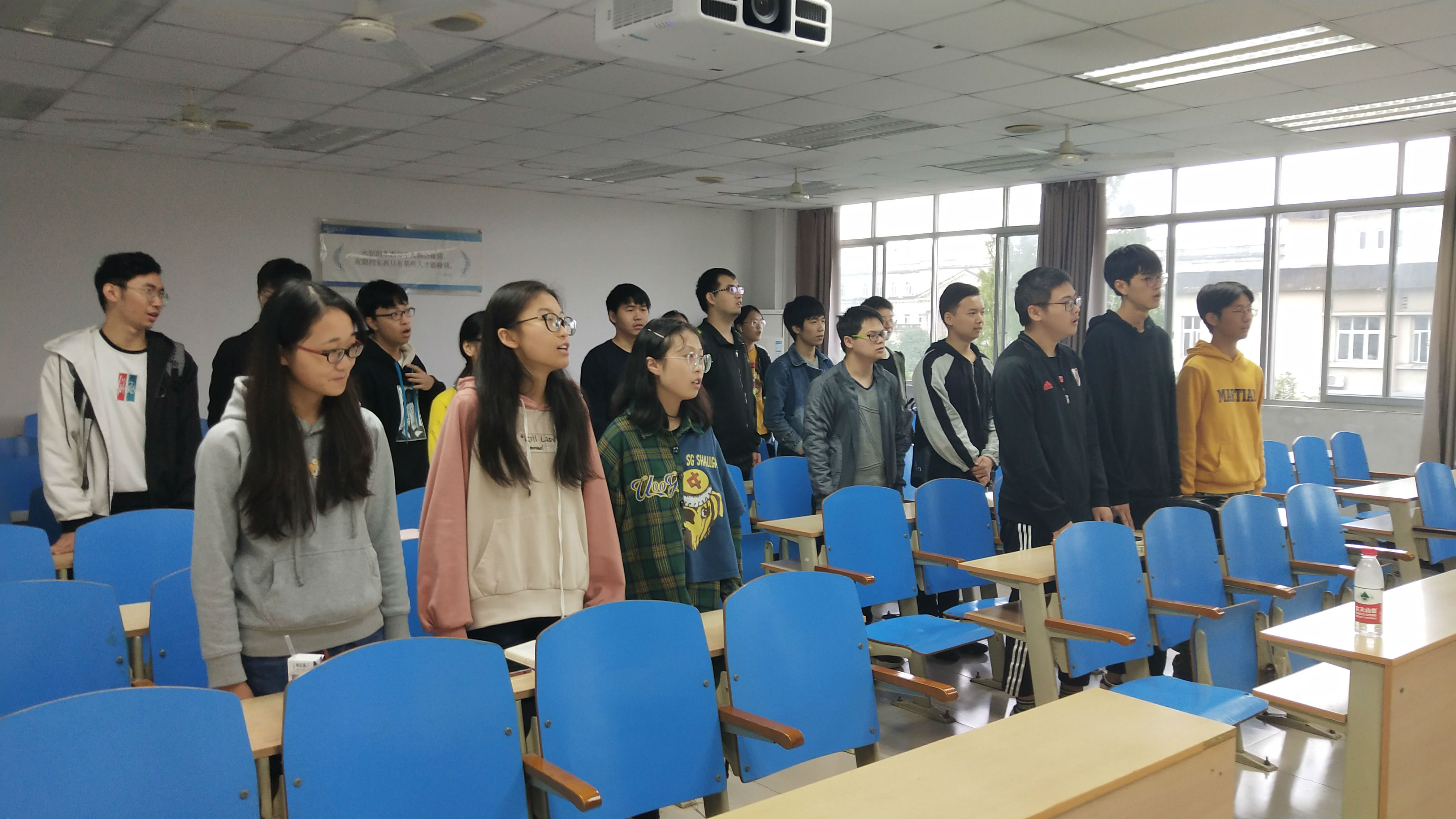 首先,宣传委员叶才新给大家播放了一段红色时期的影像混剪。接着,房虎成同学上台给大家分享了自己对于中华优秀传统文化的理解,诠释了“责任先于权利,义务先于自由”。