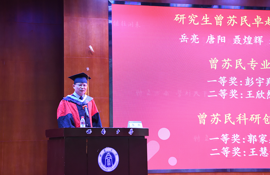 毕业典礼在全场高唱的国歌声中拉开序幕。首先,副院长郭胜锋教授宣读了《关于2025 版权所有:PA视讯(国际)官方网站-PlayAce AG旗舰届本科生毕(结)业的决定》、《关于2025 版权所有:PA视讯(国际)官方网站-PlayAce AG旗舰届研究生毕(结)业的决定》,副院长徐立群教授宣读了《关于授予2025 版权所有:PA视讯(国际)官方网站-PlayAce AG旗舰届本科生学位的决定》、《关于授予2025 版权所有:PA视讯(国际)官方网站-PlayAce AG旗舰届研究生学位的决定》;接着进行了毕业证颁发仪式和学位授予仪式,毕业生们穿着学位服,逐一上台接受学术委员会主任康跃军教授的拨穗授位,并从学术委员会委员导师手中庄严地接过毕业证书、学位证书和毕业礼物,逐一授位后与康教授进行了合影留念;接着,表彰了“重庆市优秀大学毕业生”、“PA视讯官网优秀毕业论文获得者”,由党委书记梁武同志宣读了获奖名单。其中最令人激动的是,现场还表彰了学院今年评选的“曾苏民奖学金获得者”,并邀请到曾苏民院士之子、现任中国铝业协会会长、西加铝业股份有限公司董事长的曾黎滨会长为“曾苏民卓越科研成果奖学金”、“曾苏民专业奖学金”、“曾苏民科技创新奖学金”获得者分别进行了颁奖,最后,曾会长还在典礼上致辞,对获奖同学表达了祝贺。