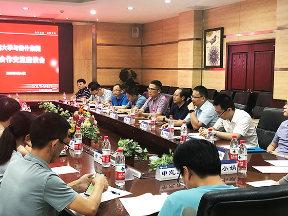 7月14日下午,五粮液下属单位普什集团副总经理闫庆禹一行五人在PA视讯官网宜宾研究院陈金凤院长陪同下到访我院,就PA视讯官网-普什集团校企合作展开参观和座谈交流。学院党委书记梁武、院长徐茂文和部分教师代表参加,此外,相关学院如蚕桑纺织与生物质科学学院、食品科学学院及工程技术学院部分教师代表一同参加了本次交流会。