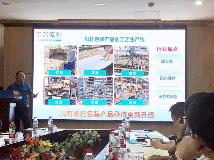 随后,我院林华教授精心展示了自己的代表性项目成果——“格林兰”生物基胶及酒糟高附加值利用技术,指出了产业化路径的主要难点及解决途径,期待能够有机会与普什集团展开合作;徐茂文院长介绍了其团队在酒糟衍生的高性能硬碳负极材料上取得的重要进展;李路教授分享了其研究历程以及在模具制造方面积累的研究经验。食品科学学院阮长晴副教授围绕普什集团在高阻隔PET食品包装材料方面的技术需求展开讨论,并详细介绍了其在阻隔性羧甲基纤维素材料开发以及团队成员在高热阻、高强度聚乳酸包装材料熔融加工方面取得的最新进展。蚕桑纺织与生物技术学院蓝光芊副院长介绍了其在蚕丝止血材料、棉花纤维高附加值利用方面积累的丰硕成果。工程技术学院申志康教授和周平副教授等介绍了其团队的主要研究方向,期望能够对接普什集团的项目需求。
