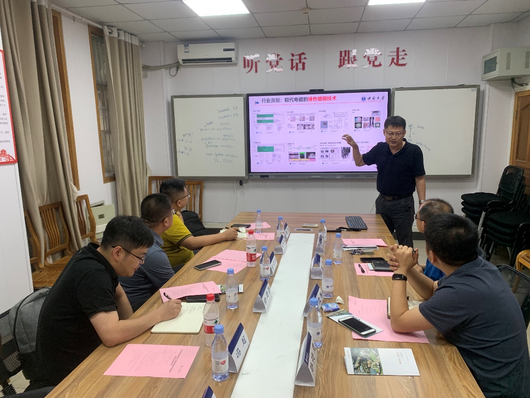 孙德恩介绍了薄膜团队在表面处理绿色镀膜技术领域的代表性科研成果,以及在镀膜设备研制、工艺开发以及技术咨询与培训等领域的优势。徐建芳对绿色镀膜技术在五金工具以及眼镜产业的广泛应用产生了浓厚的兴趣,并就关心的投资成本及技术问题进行了深入交流。
