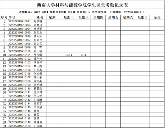 22级4班第7周考勤表