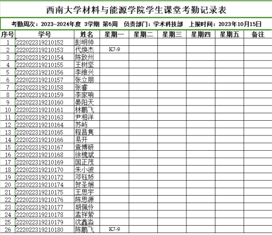 22级6班第6周考勤表