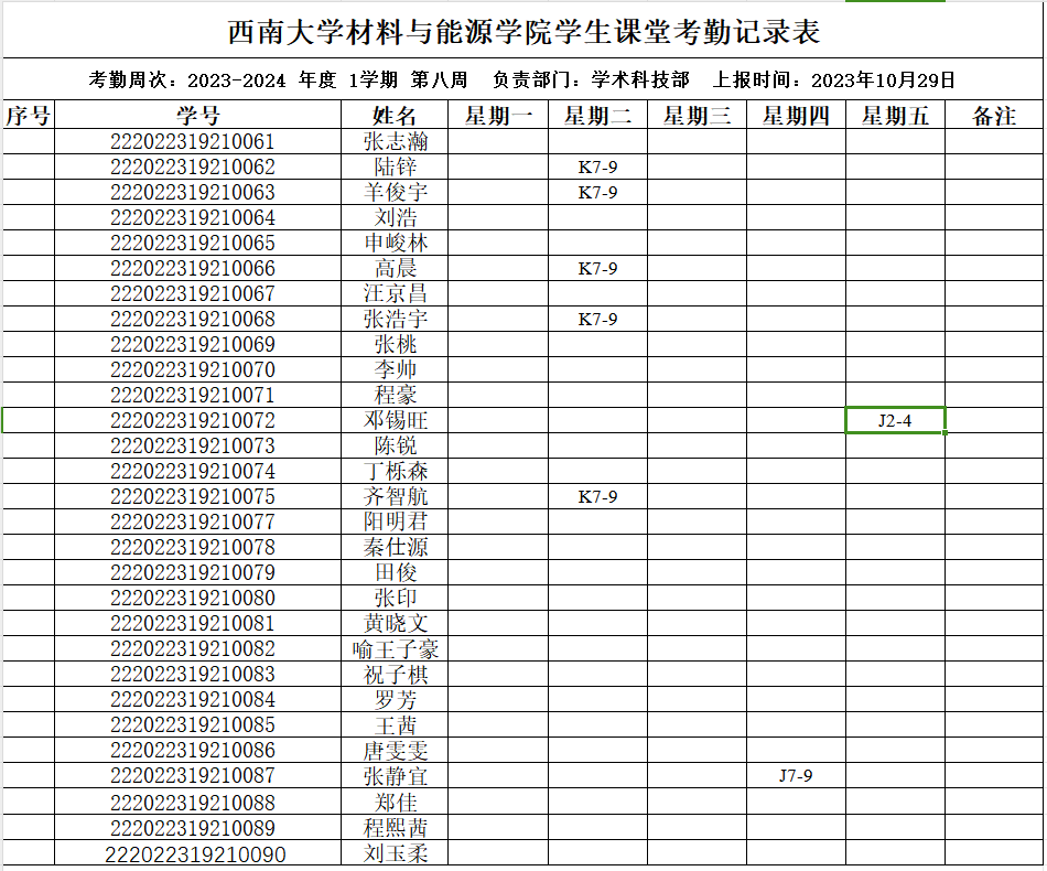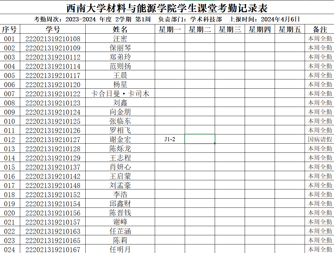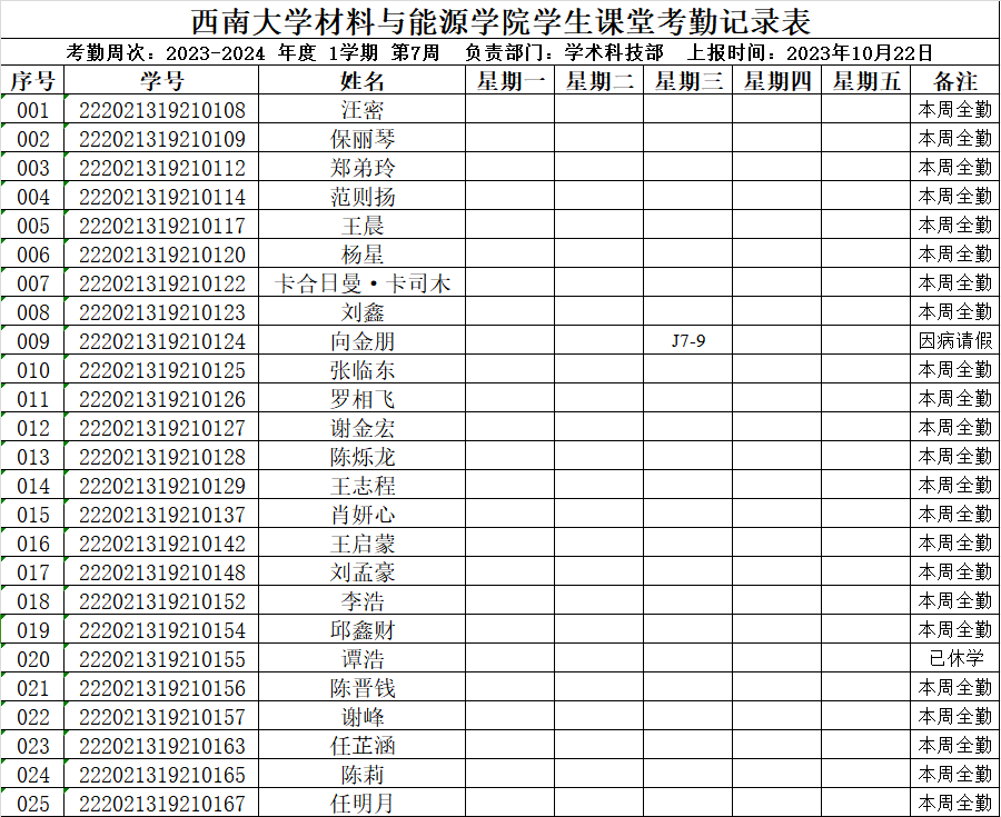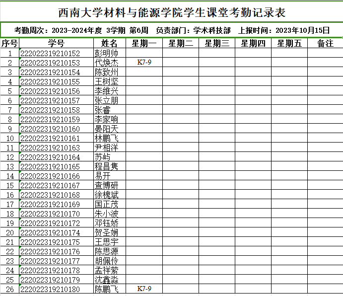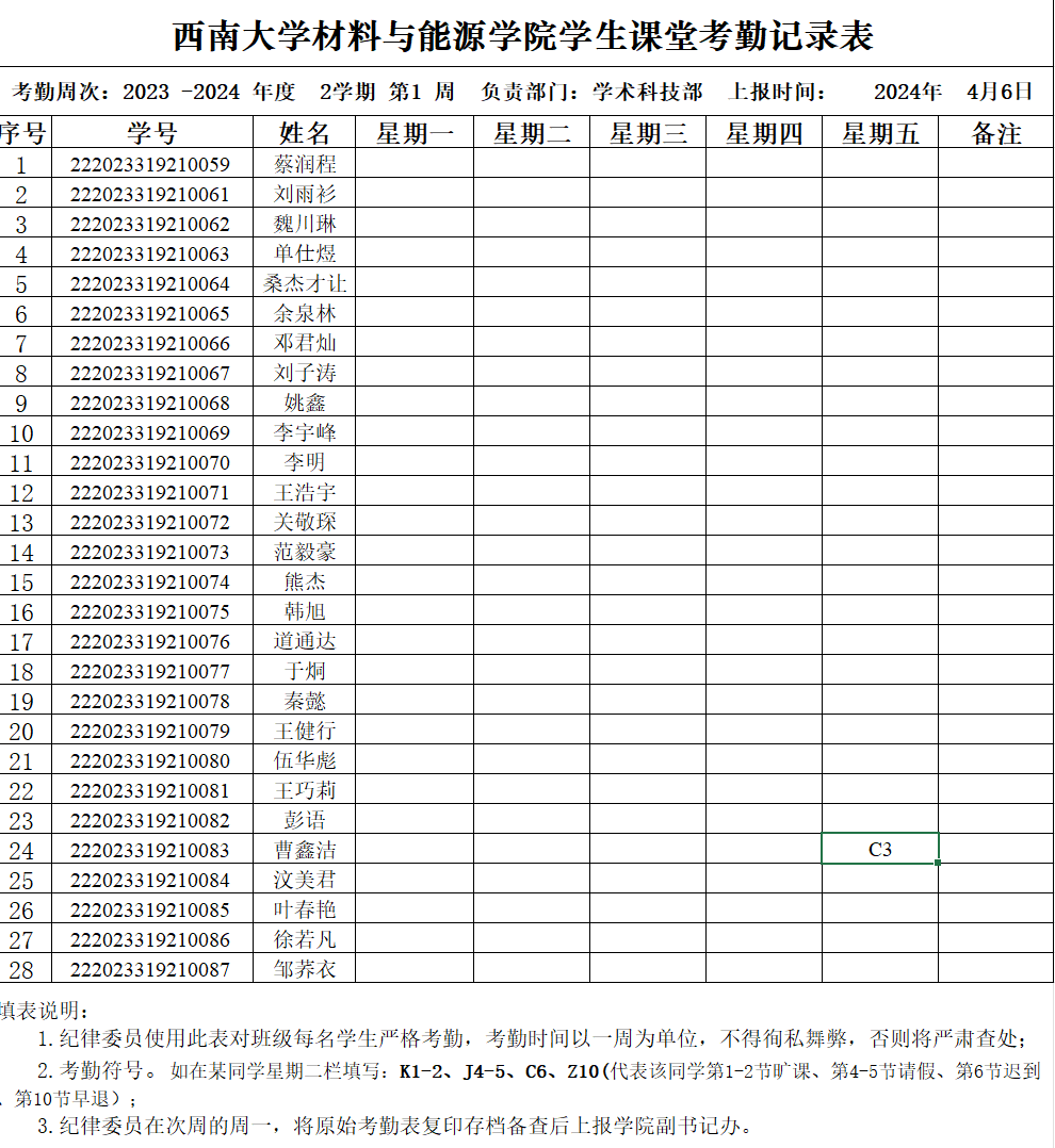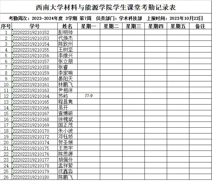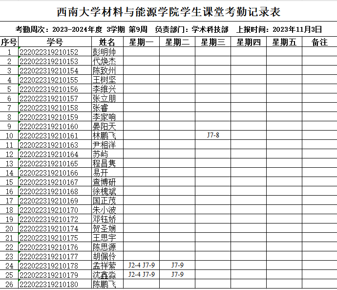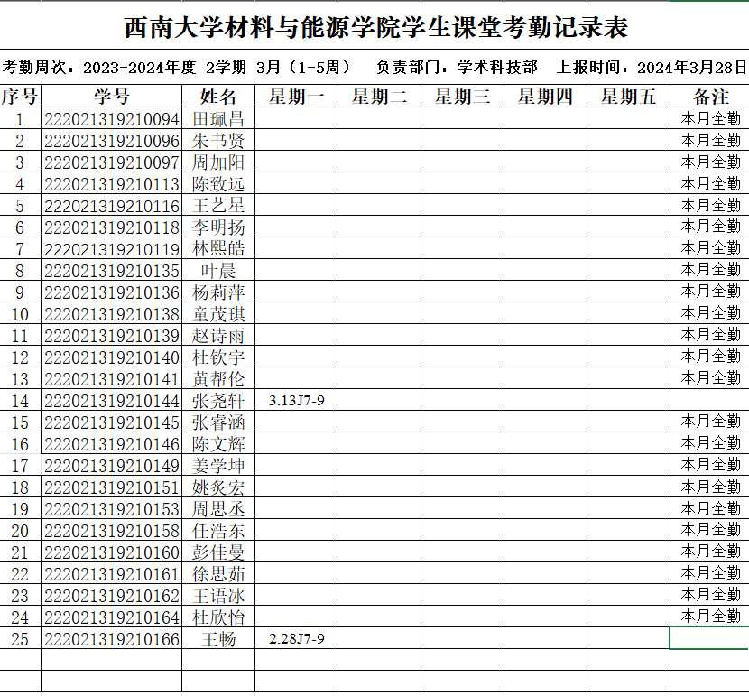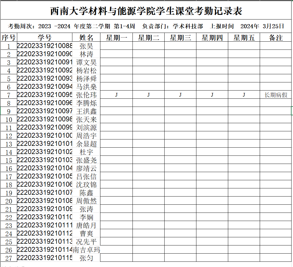 考勤表